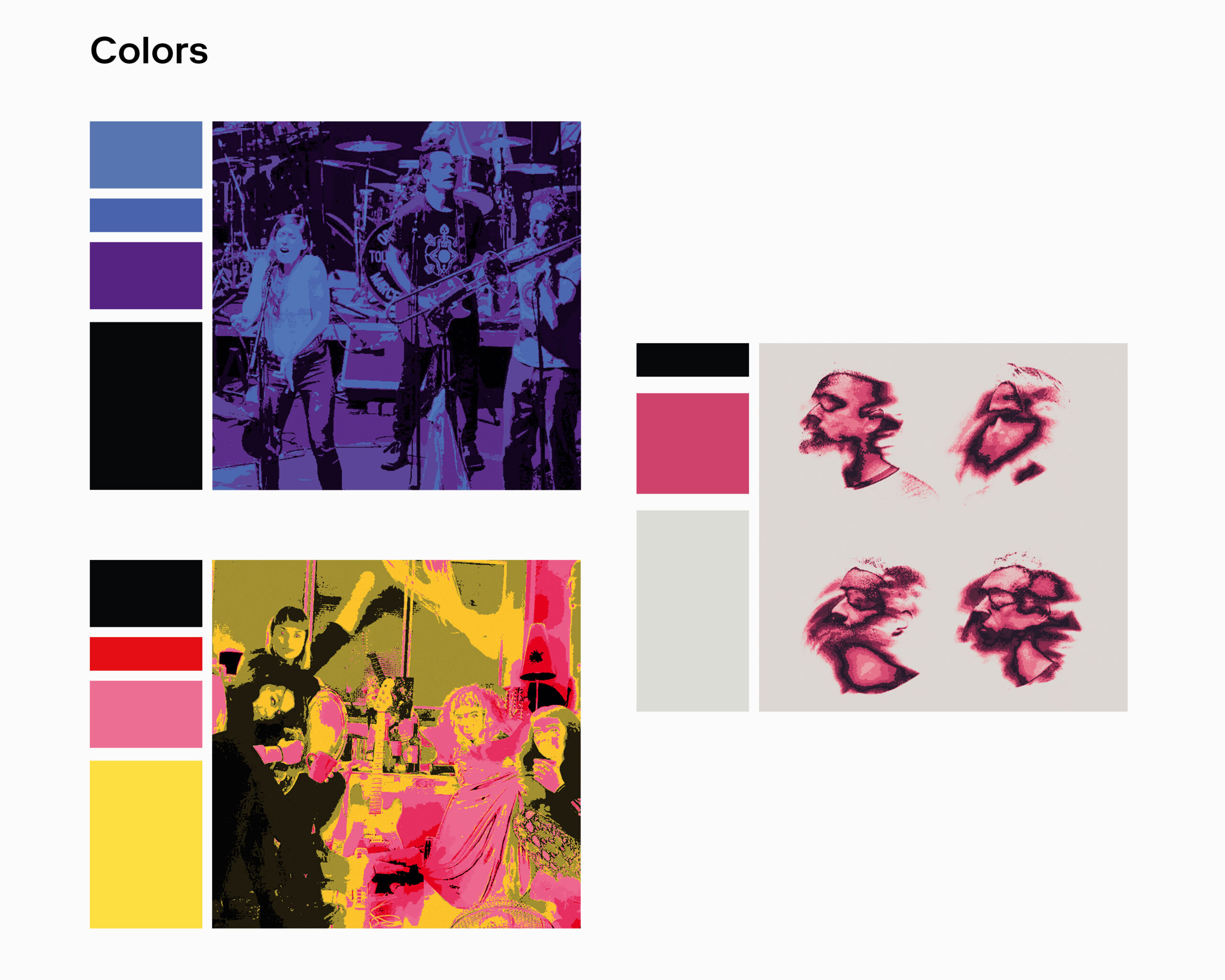 The concept was made around the urbanistic plan of La Chaux-de-fonds and strong vibrant colors. Pics representing performing groups were treated with contrasting tones to show the alternative vibes of the night club.